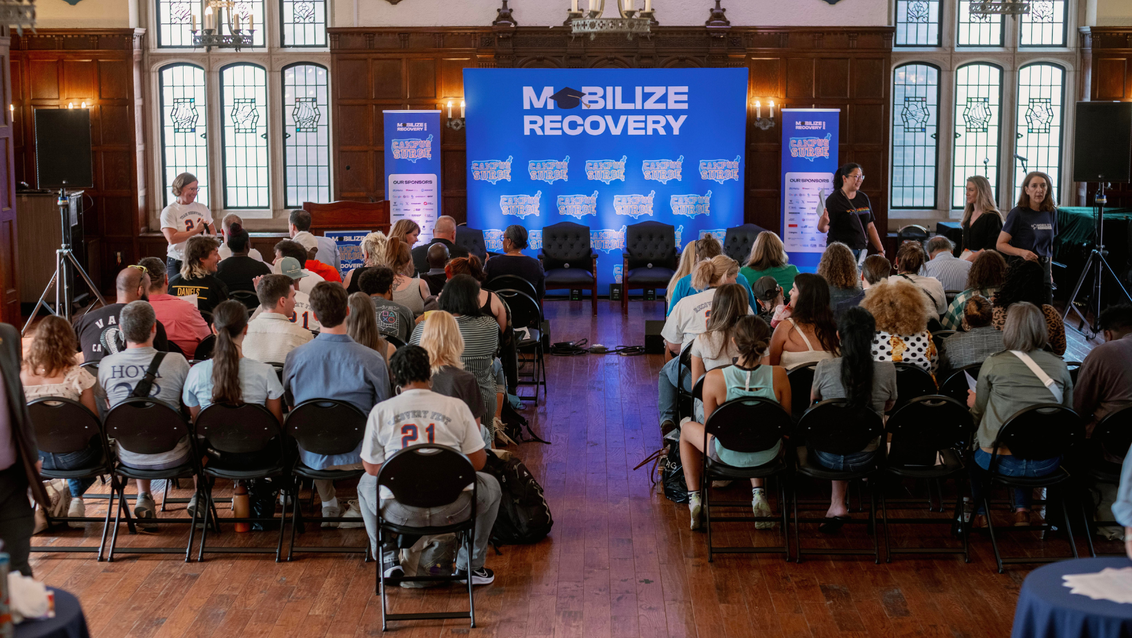 The Campus Surge event featured panel discussions, a research presentation on collegiate recovery from Noel Vest, and a special performance by Noah Thompson.