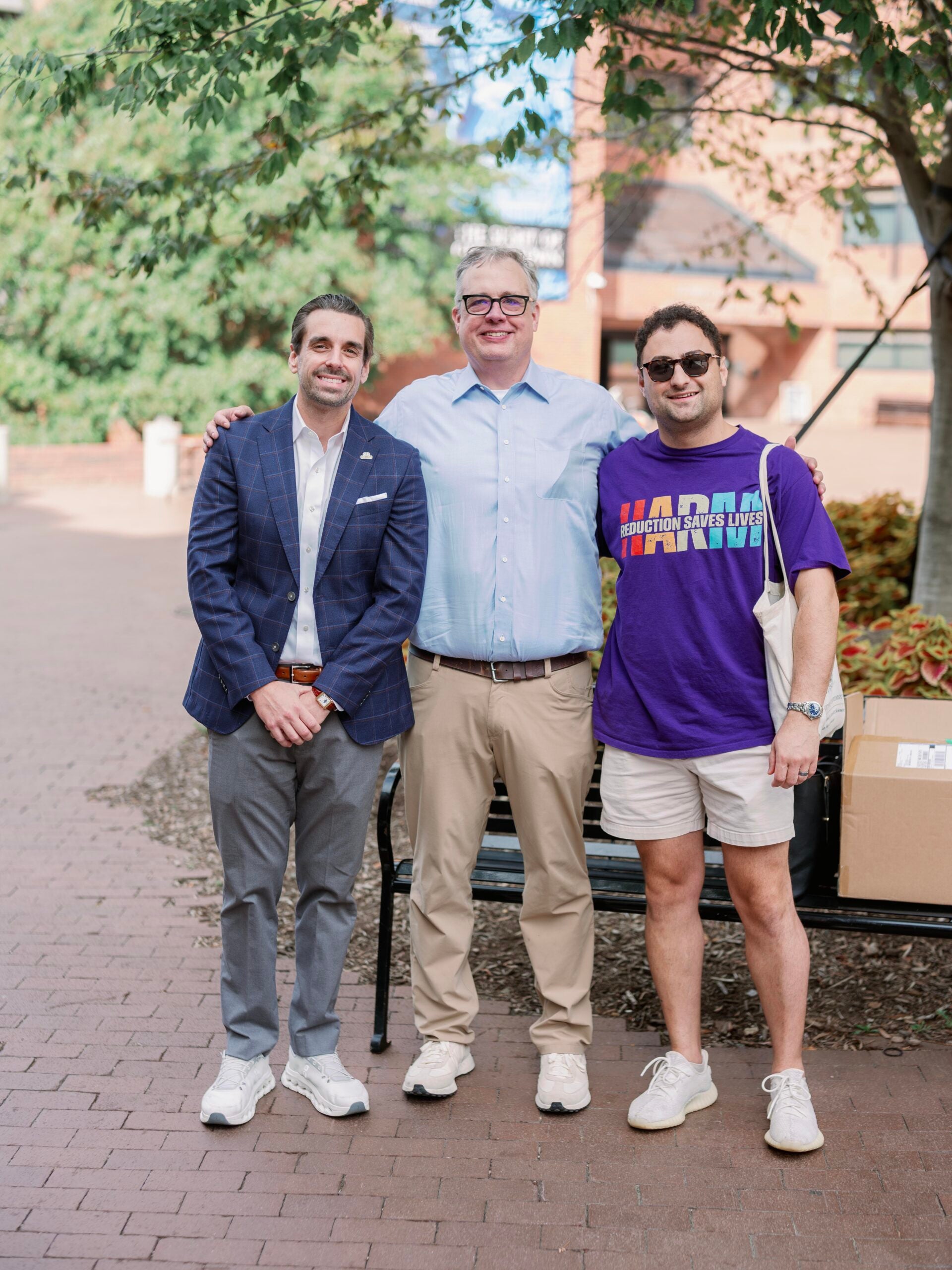 MS ADPP Alumni Chad Jackson and Giorgi Minasovi pose with a program attendee on the Red Square.